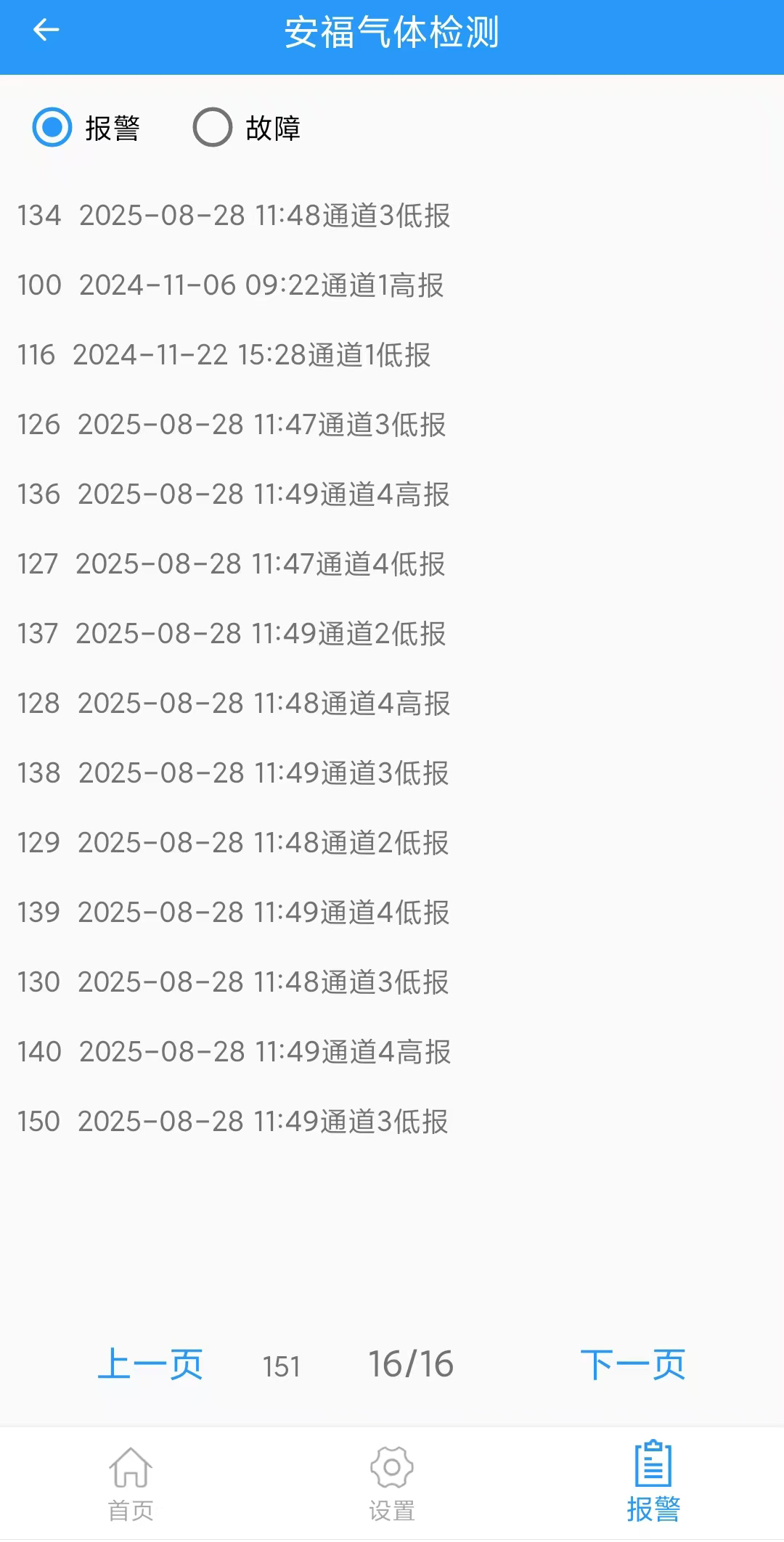 低报、高报两级报警均可设置,屏幕显示报警类别
